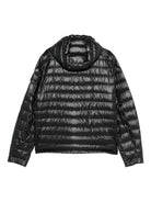This sleek black jacket features Moncler's signature down insulation and glossy quilted construction, ensuring you stay cozy without sacrificing elegance. The hooded design and full-zip closure provide versatile protection against the elements, while the fitted silhouette creates a flattering, modern look.