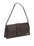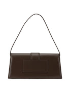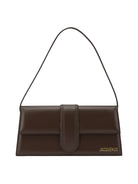 Introducing the "Le Bambino Long" Shoulder Bag by Jacquemus, a stunning example of refined luxury and minimalist design. This sophisticated shoulder bag features a sleek rectangular silhouette crafted in rich chocolate brown leather, complete with signature Jacquemus branding that adds an unmistakable touch of elegance.