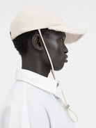 Crafted in a versatile cream colorway with subtle Jacquemus branding embroidered on the front, this cap is the perfect finishing touch to any casual ensemble. The adjustable drawstring closure ensures a comfortable, customized fit.