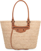 Elevate your everyday style with the LE CITY M Natural Basket Bag from Balenciaga. This beautifully crafted tote features a natural woven basket construction with luxurious leather handles and trim, creating the perfect blend of casual sophistication and high-end craftsmanship.