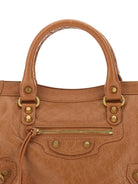 Introducing the iconic Balenciaga Le City Small Leather Handbag in a rich brown hue. This timeless piece features classic top handles for elegant hand-carry styling, plus a detachable shoulder strap for versatile wear options.