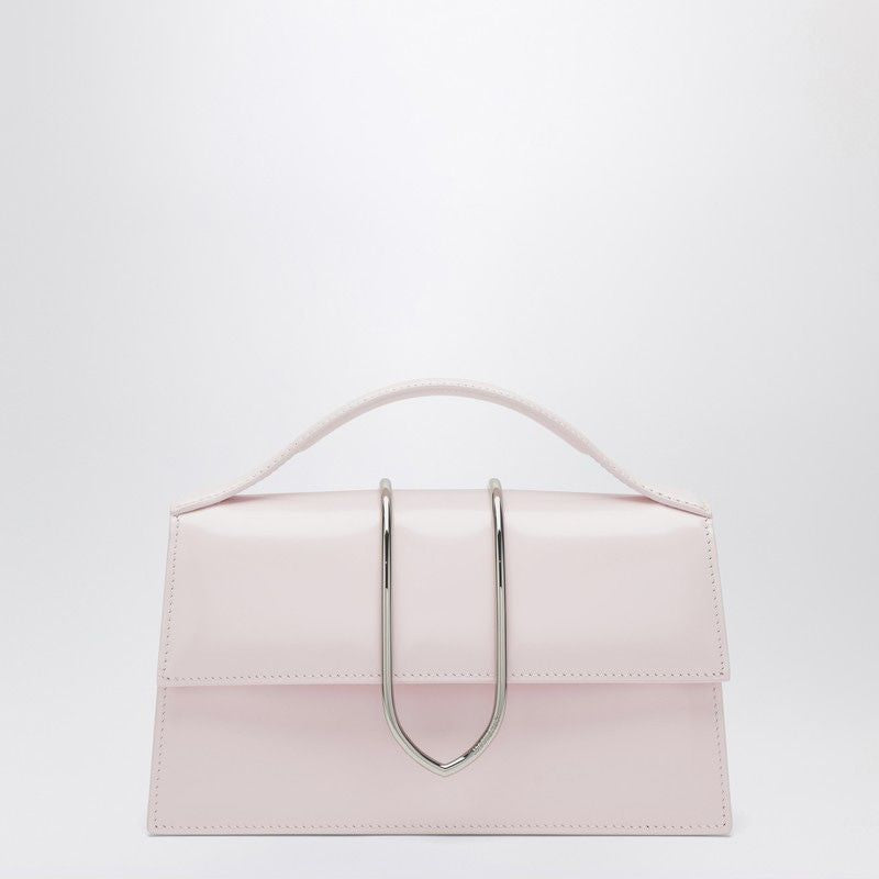 Elevate your everyday style with the Le Grand Bambino bag from Jacquemus. This sophisticated satchel is crafted from luxurious light pink brushed and glossy calfskin leather, creating a beautiful textural contrast that catches the eye.