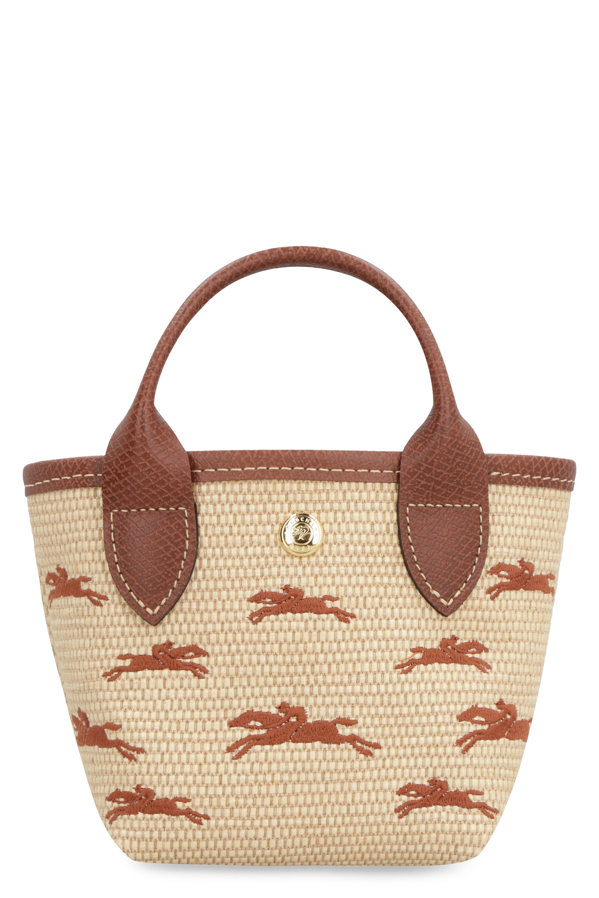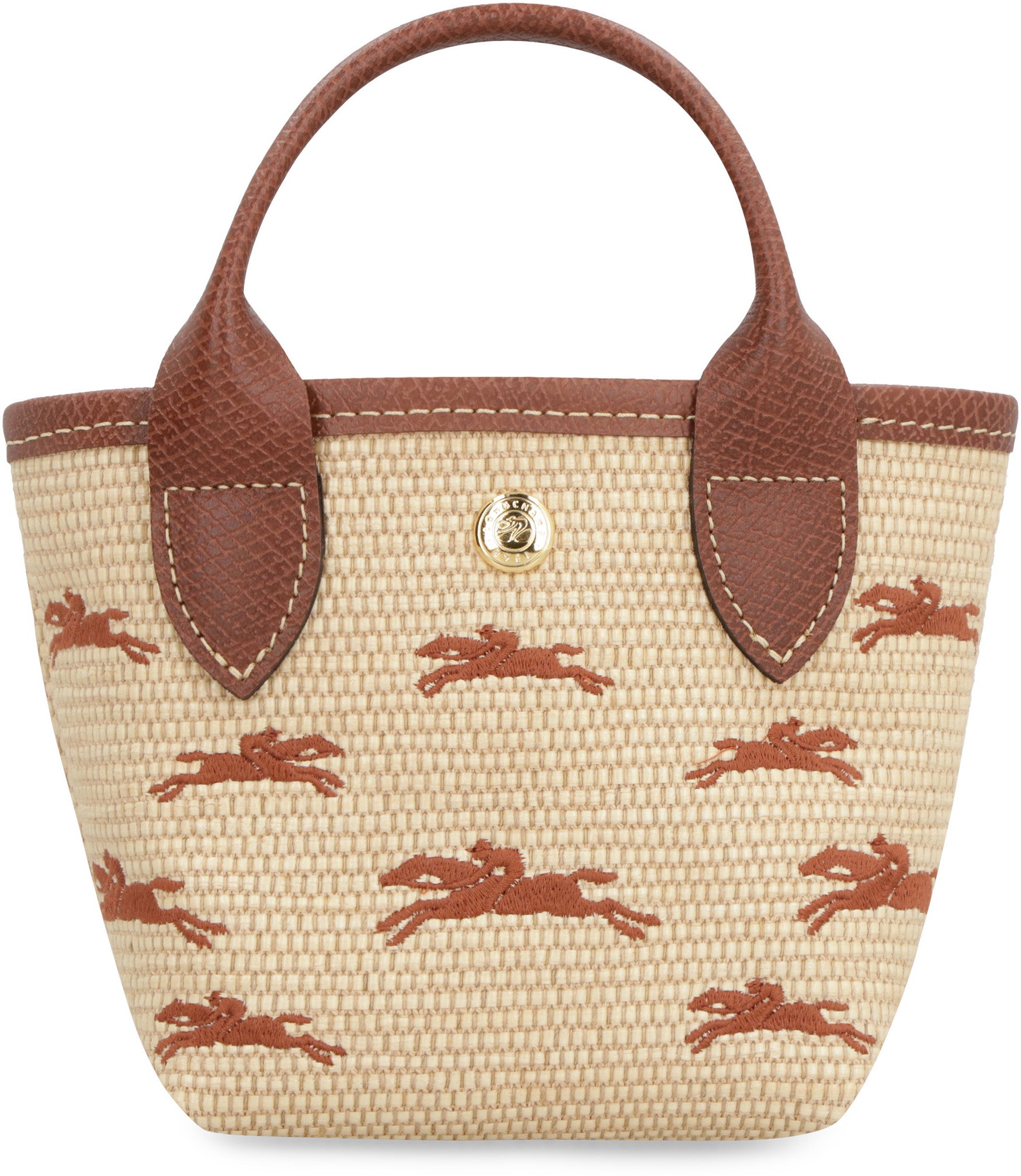 The compact design showcases gold-tone metal hardware and a convenient snap closure, while the canvas lining keeps your essentials secure. Whether you're strolling through a seaside market or enjoying a casual weekend brunch, this XS tote adds a touch of French elegance to any warm-weather ensemble.
