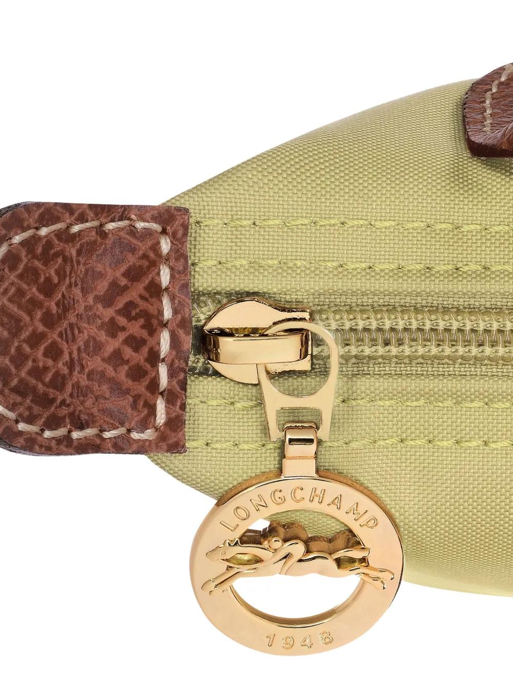 Introducing the Longchamp Le Pliage Original Pouch Bag in a fresh pistachio green hue that brings a pop of color to any ensemble. This versatile piece features a convenient top handle, secure zip closure, and elegant gold-tone hardware with snap fastening details.