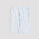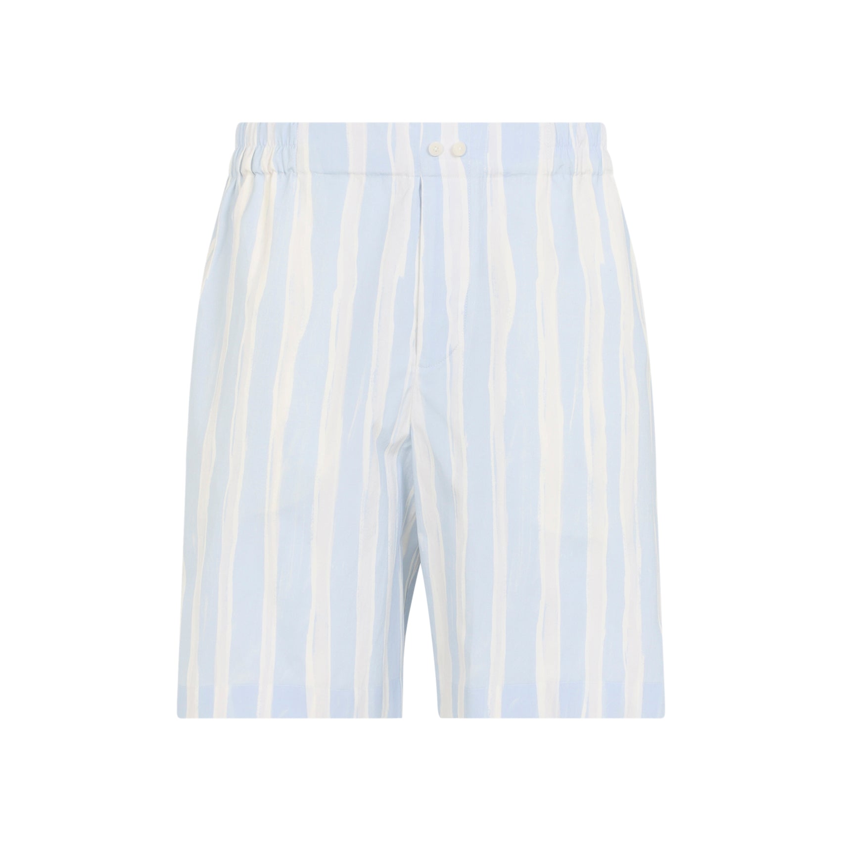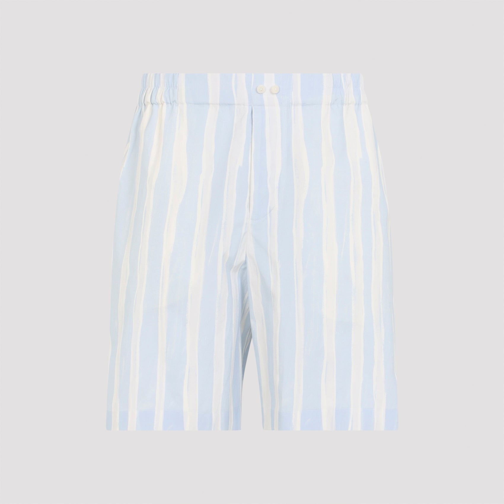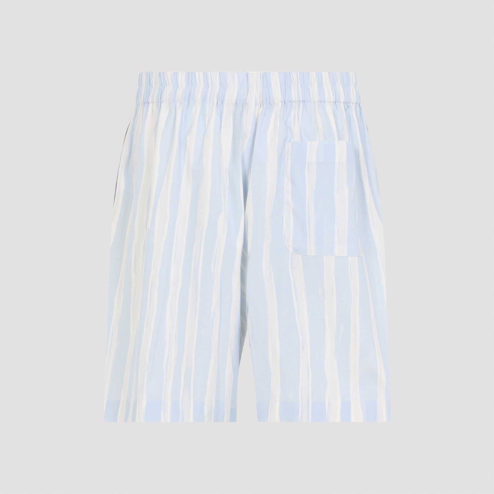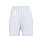 BLUE STRIPED ELASTICATED WAISTBAND TWO BUTTON CLOSURE SIDE SEAM POCKETS REAR PATCH POCKET
