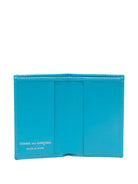 Introducing the COMME DES GARÇONS WALLET Leather Bi-Fold Classic Bill Wallet, a timeless accessory crafted from premium 100% cowhide leather. This sleek wallet features a vibrant turquoise hue that adds a pop of color to your everyday essentials while maintaining a sophisticated, minimalist aesthetic.