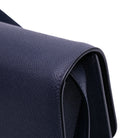 This crossbody bag features a leather body, a flat leather shoulder strap, a front flap with a flip lock closure, and interior slip pockets.