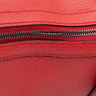 This satchel features a leather body, rolled leather handles, a top zip closure, and interior zip and slip pockets.