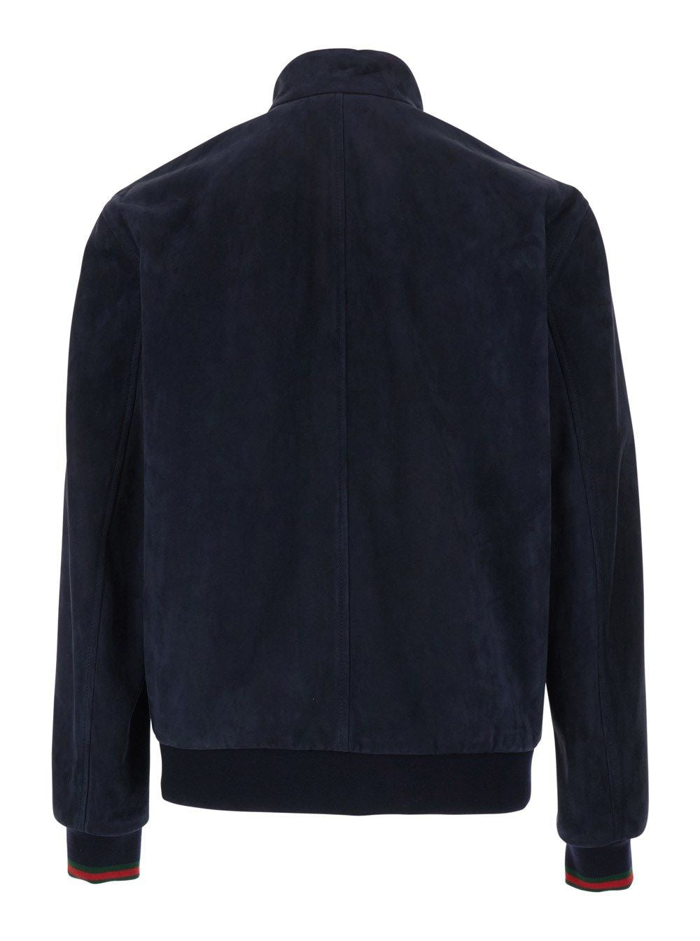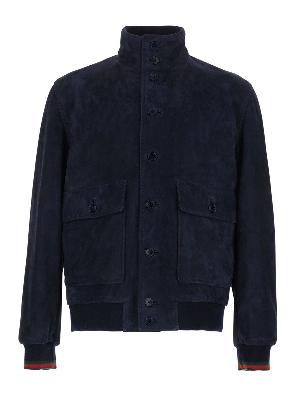 JACKET IN DARK BLUE COLOR, MADE OF SOFT AND DURABLE LEATHER. FEATURES A FRONT CLOSURE WITH BUTTONS, HIGH COLLAR FOR BETTER COVERAGE AND COMFORT. THE CUFFS AND THE LOWER HEM ARE ELASTICATED, PROVIDING AN OPTIMAL FIT. IDEAL FOR CASUAL LOOKS AND TO PROTECT AGAINST THE COLD, IT IS A VERSATILE PIECE TO MATCH WITH DIFFERENT STYLES. AVAILABLE IN VARIOUS SIZES.