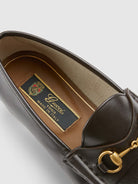 Crafted from premium leather in a rich brown tone, these classic loafers showcase impeccable Italian craftsmanship and timeless design. The signature gold-tone horsebit hardware adds an unmistakable touch of elegance and heritage to every step.
