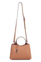 Elevate your everyday style with this exquisite Leather Micro Tote Bag from Tod's. Crafted in luxurious camel brown leather with a sophisticated grained texture, this compact tote features the brand's signature debossed logo and an elegant logo pendant detail.