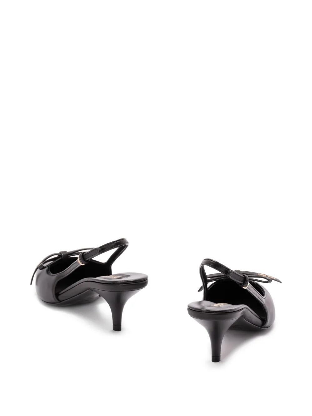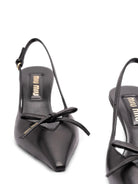 The classic slingback silhouette offers both style and versatility, making these pumps perfect for the office, evening events, or elevated everyday wear. The pointed toe and refined bow accent embody Miu Miu's signature blend of playful femininity and Italian craftsmanship.