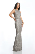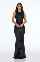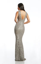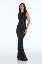 This sophisticated sequin gown will turn heads with its elegant style. Leighton is a figure-flattering gown with its curve-hugging mermaid silhouette and a plunging backline.