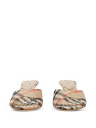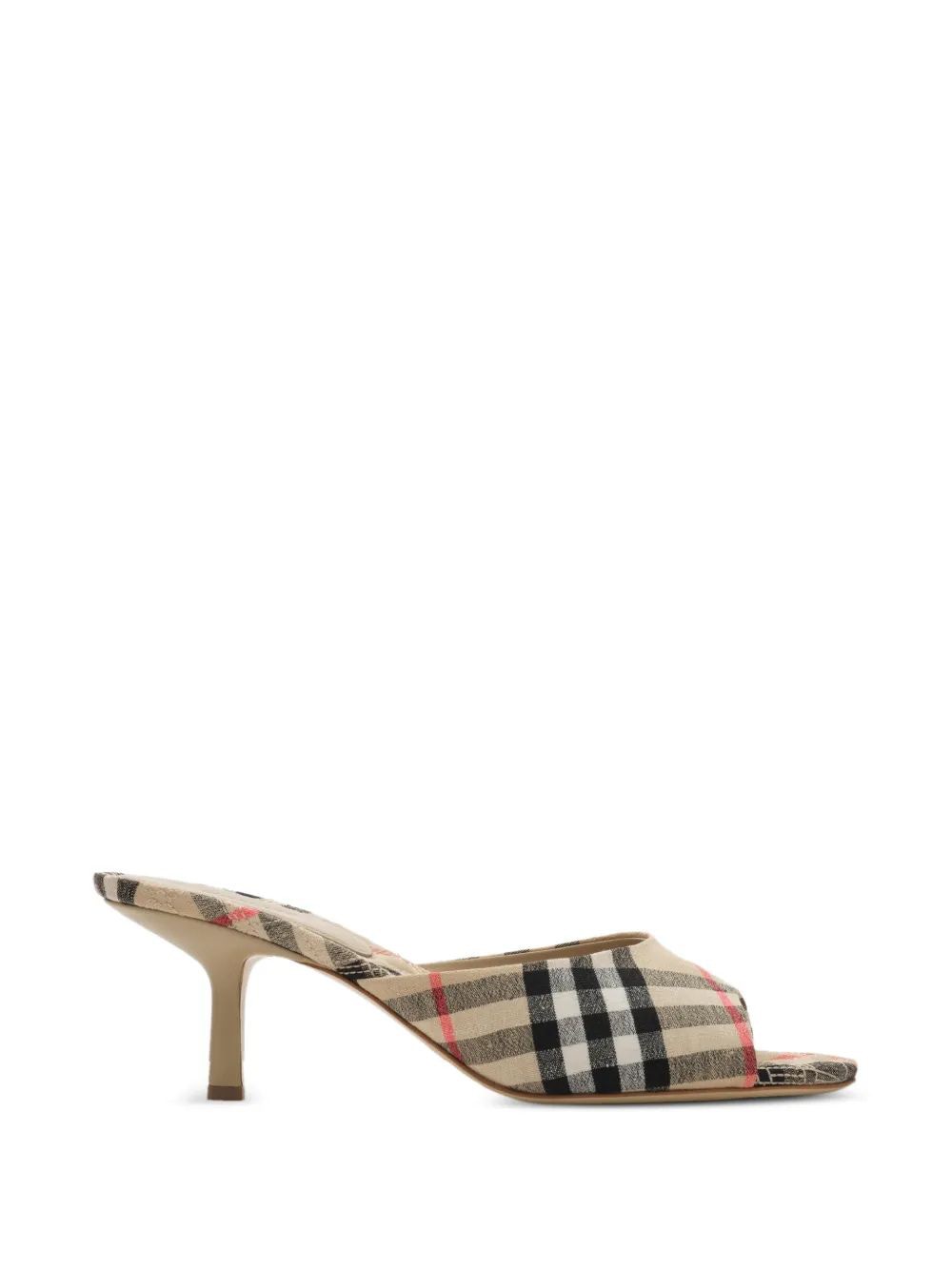 The open-toe silhouette and 65mm heel height offer the perfect balance of comfort and elegance, making these mules ideal for transitioning from day to night. The effortless slip-on design ensures easy wear, while the classic check pattern adds a timeless touch to any outfit.