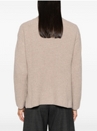 LIGHT BEIGE CASHMERE KNITTED CONSTRUCTION CREW NECK LONG SLEEVES STRAIGHT HEM
