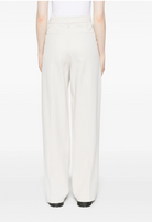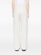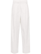 LIGHT BEIGE COTTON TWILL WEAVE PLEAT DETAILING HIGH-WAISTED BELT LOOPS CONCEALED FRONT BUTTON, HOOK AND ZIP FASTENING TWO SIDE SLASH POCKETS TWO REAR WELT POCKETS STRAIGHT LEG