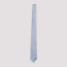 BRIONI STANDARD 7X150 LIGHT BLUE SILK TIE. CRAFTED FROM TEXTURISED LIGHT BLUE SILK, FEATURING AN ALL-OVER STRIPED JACQUARD PATTERN, LOGO EMBROIDERY AT THE TIP, AND SILK LINING.