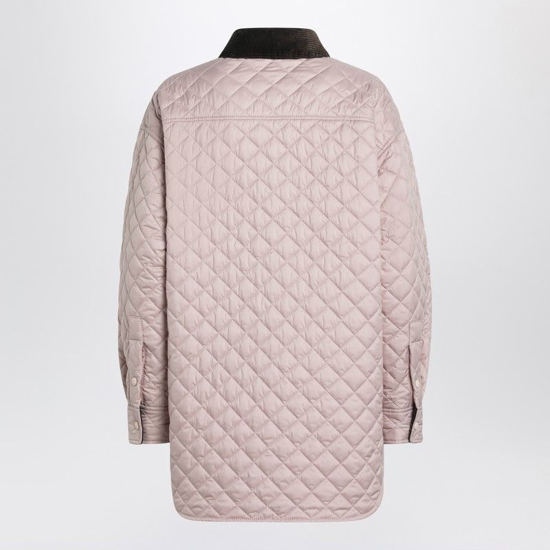 Elevate your outerwear collection with this exquisite light pink quilted jacket from LOEWE. This luxurious piece features a sophisticated quilted design with contrasting brown corduroy collar and leather chest pocket adorned with the iconic embossed anagram logo.