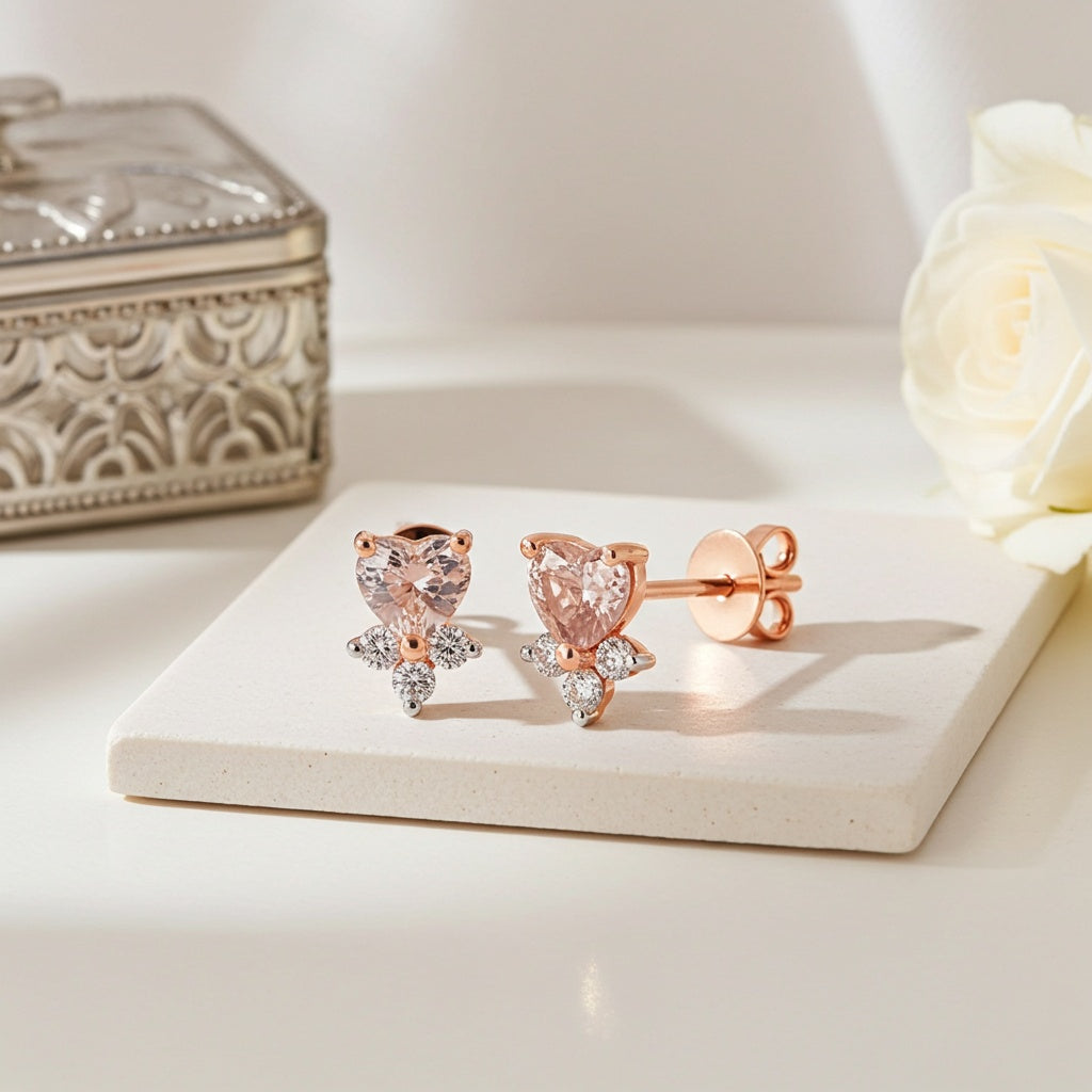 Light Pink Sapphire & Diamond Stud Earrings in 14k Rose Gold