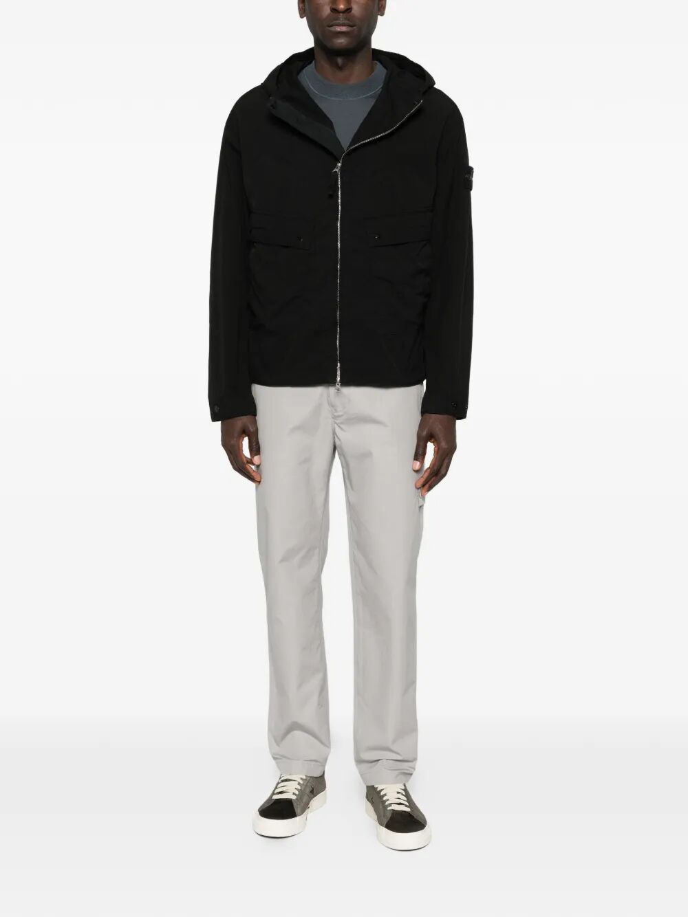 The classic black colorway features a full-zip front closure, adjustable hood, and convenient front pockets, making it an essential layering piece for any modern wardrobe. The signature Stone Island compass badge on the sleeve adds an iconic touch of authenticity.