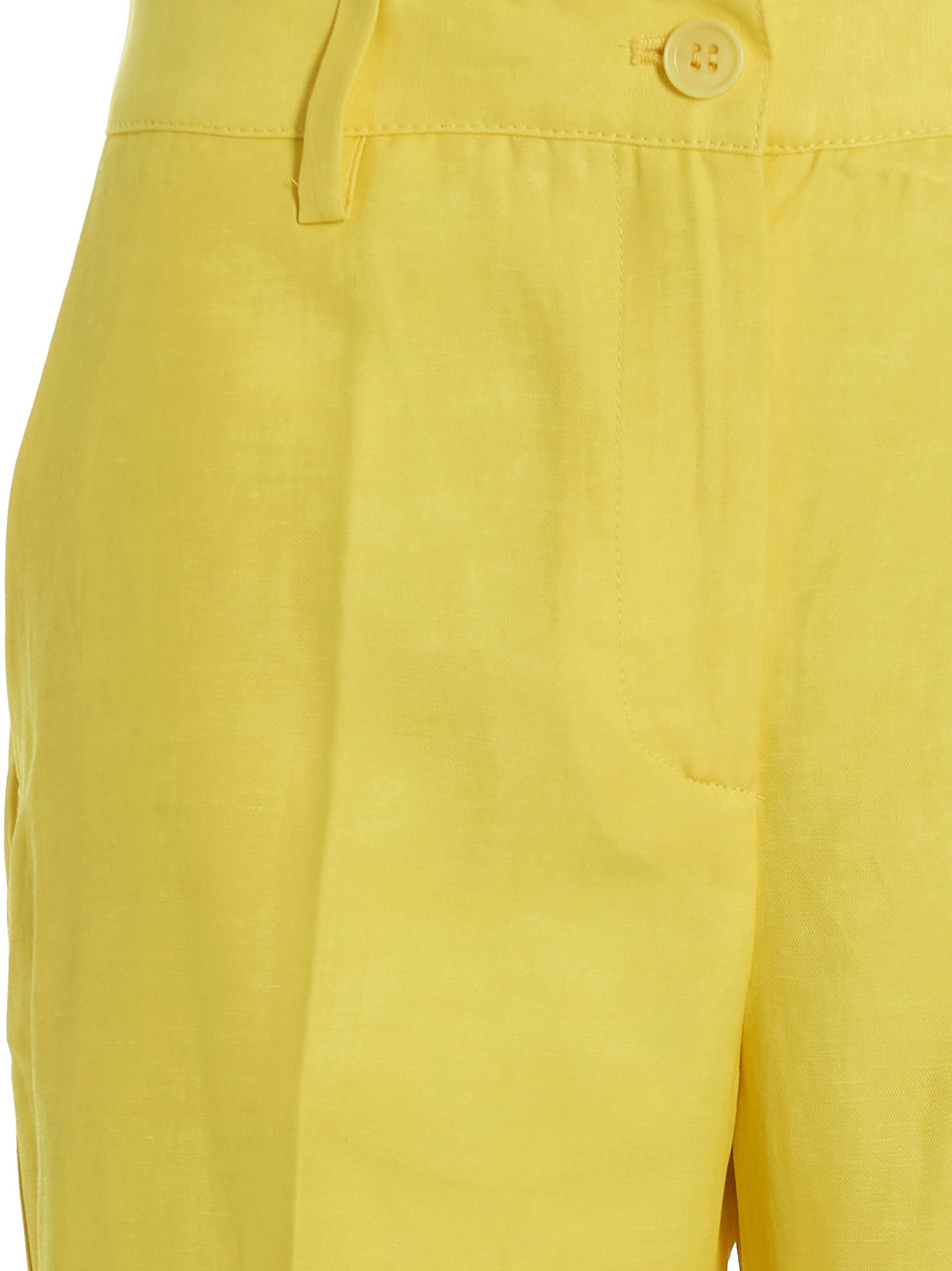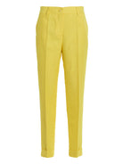 Elevate your warm-weather wardrobe with these sophisticated linen blend pants from P.A.R.O.S.H. Crafted in a vibrant chartreuse hue, these tailored pants feature a classic zip and button closure, functional pockets, and a sharp central crease for a polished finish.