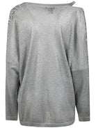 LINEN COTTON V-NECK PULLOVER WITH LAMINATION AND STRASS