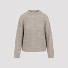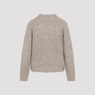 BRUNELLO CUCINELLI'S MASTERFUL CRAFTSMANSHIP TRANSFORMS KNITWEAR INTO A SENSORY EXPERIENCE OF LIGHTNESS AND AIRINESS. THIS CREW NECK JUMPER STANDS OUT FOR ITS REFINED OPENWORK DETAILING, WHICH CREATES A DELICATE GEOMETRIC PATTERN, GIVING THE GARMENT AN AIRY AND FEMININE LOOK. THE LINEN AND NYLON YARN COMBINES THE NATURAL FRESHNESS OF THE PLANT FIBRE WITH A RESISTANT AND SLIGHTLY ELASTIC STRUCTURE, ENSURING A FLAWLESS FIT. SMALL TONE-ON-TONE SEQUINS ARE SKILFULLY INSERTED INTO THE WEAVE, CAPTURING THE LIGHT WITH EVERY MOVEMENT FOR A RADIANT YET DISCREET EFFECT. THE RELAXED VOLUMES AND DROPPED SHOULDERS COMPLETE THE DESIGN WITH A TOUCH OF MODERN EASE. - CREW NECK, RIBBED CUFFS AND HEM - OPENWORK KNIT THROUGHOUT THE BODY AND SLEEVES - DROPPED SHOULDERS FOR SUPERIOR COMFORT - SEQUINS INTEGRATED INTO THE YARN - COOL AND BREATHABLE TEXTURE DESIGNER ID: MCO564700 C9089