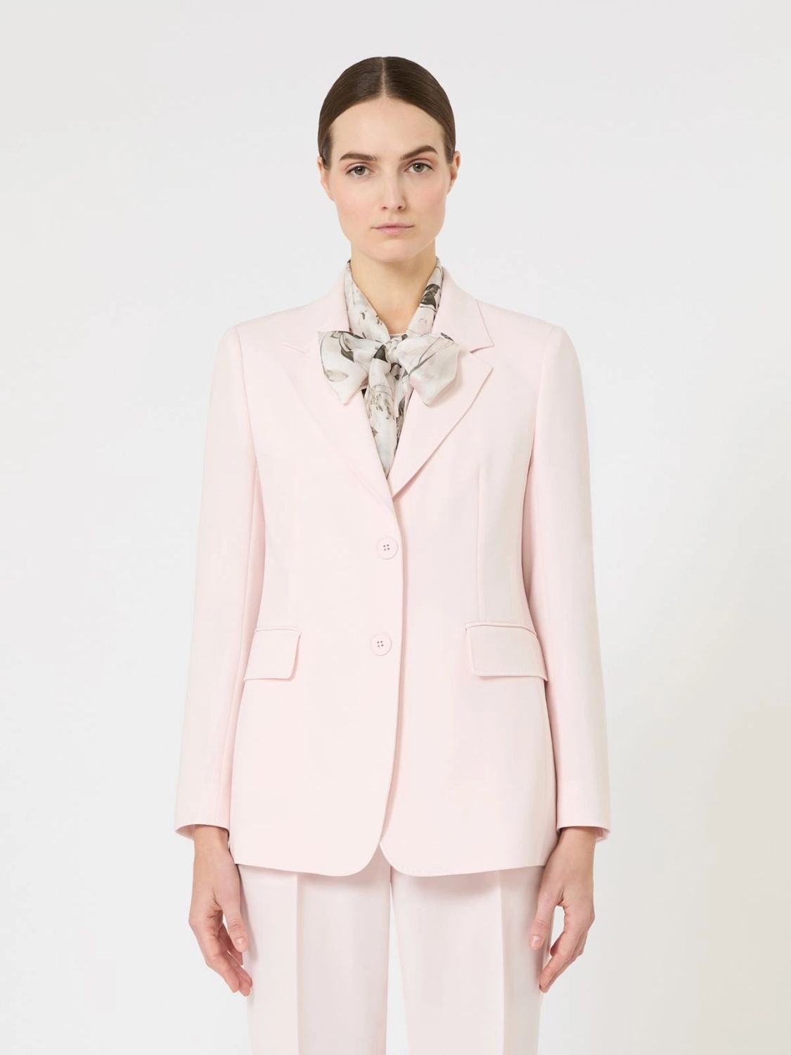 Elevate your professional wardrobe with the Linz Jacket in a soft, sophisticated pink hue from MAX MARA STUDIO. This impeccably tailored blazer features classic notched lapels, a flattering structured silhouette, and refined button closure that exudes timeless elegance.