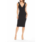 Bows at the shoulders give the Lita flare that set it apart from the rest. Combined with a plunging v-neckline, this contemporary sheath silhouette dress skims your figure with stretch crepe fabrication.