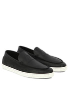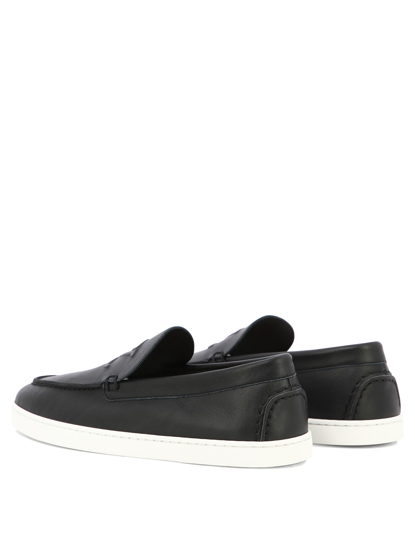 Elevate your footwear collection with these sophisticated loafers from Christian Louboutin. Crafted in supple black leather with a contrasting white sole, these slip-on shoes offer effortless style and luxury comfort.