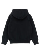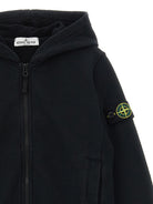 This Stone Island Junior logo badge hoodie is the perfect blend of comfort and style for active kids. Crafted from slightly fleece cotton, this zip-front hoodie features practical pockets, long cuffed sleeves, and the iconic Stone Island logo badge on the sleeve. The full-zip closure makes it easy to layer over tees and long sleeves, while the soft fleece interior provides warmth without bulk. Style it with joggers for a complete athleisure look, or pair with jeans for everyday casual wear. A versatile essential from Stone Island Junior that delivers the brand's signature quality and contemporary aesthetic in a kid-friendly silhouette.