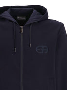 NAVY BLUE COTTON BLEND EMBROIDERED LOGO DRAWSTRING HOOD FRONT ZIP FASTENING TWO SIDE WELT POCKETS LONG SLEEVES STRAIGHT HEM