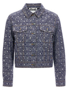 Elevate your denim game with this stunning Moschino 'Logo' jacket, crafted from a premium cotton denim blend. This eye-catching piece features an all-over logo pattern adorned with sparkling rhinestone appliqués that add a touch of glamour to the classic denim silhouette.