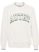 LIGHT BEIGE/LIGHT GREY COTTON BLEND JERSEY TEXTURE MÉLANGE EFFECT RIBBED TRIM STRIPED EDGE LOGO PRINT TO THE FRONT CREW NECK LONG SLEEVES STRAIGHT HEM FRENCH TERRY LINING