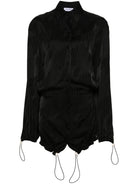 BLACK SATIN WEAVE ALL-OVER JACQUARD-LOGO PATTERN LOGO-ENGRAVED BUTTONS BOX-PLEAT DETAIL TO THE REAR STRAIGHT-POINT COLLAR DROP SHOULDER LONG SLEEVES DRAWSTRING CUFFS THIGH-LENGTH FRONT BUTTON FASTENING DRAWSTRING HEM UNLINED