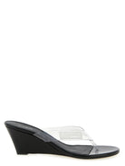 The wedge sole provides comfortable elevation and all-day wearability, making them perfect for everything from beach vacations to casual city strolls. The transparent design creates a barely-there aesthetic that elongates the leg while making a bold statement.