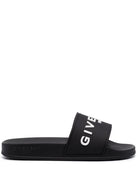 LOGO-DEBOSSED MOULDED-FOOTBED SLIDES FROM GIVENCHY FEATURING BLACK, DEBOSSED LOGO TO THE FRONT, OPEN TOE, MOULDED FOOTBED AND FLAT RUBBER SOLE.