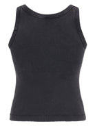 ANTHRACITE GREY COTTON FINE RIBBED APPLIQUÉ LOGO ROUND NECK SLEEVELESS STRAIGHT HEM