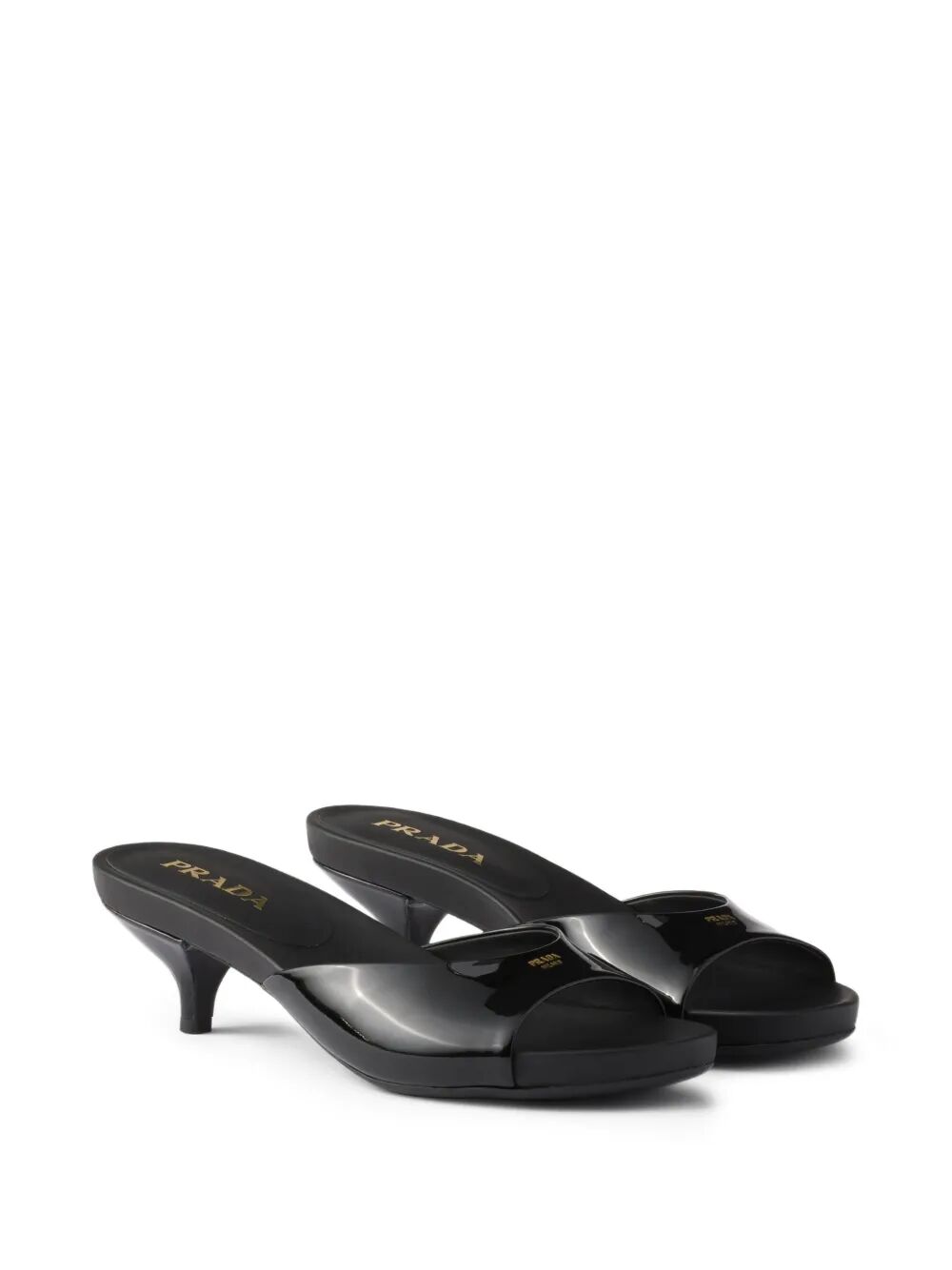 Featuring a sleek silhouette with a modern kitten heel, these slides effortlessly blend comfort with high-fashion elegance. The minimalist design showcases Prada's iconic logo detailing, making them a versatile addition to any wardrobe.