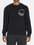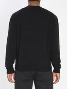 SWEATER IN BLACK CARDED WOOL. FEATURING RIBBED CREW NECK, LONG SLEEVES, EMBROIDERED WHITE LOGO ON THE CHEST, AND LOGO PATCH APPLIED ON THE SLEEVE. REGULAR FIT.
