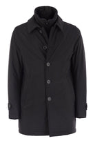 LONG, STRAIGHT-CUT GORE-TEX DOWN JACKET WITH BUTTONS AND WINDPROOF BIB WITH ZIP, PERFECT FOR THE FIRST SEASONAL COLD, WINDPROOF, WATERPROOF AND BREATHABLE. - TWO SIDE POCKETS - INNER POCKET - FEATHER PADDING DESIGNER ID: PI0667U 12346SZ 9200