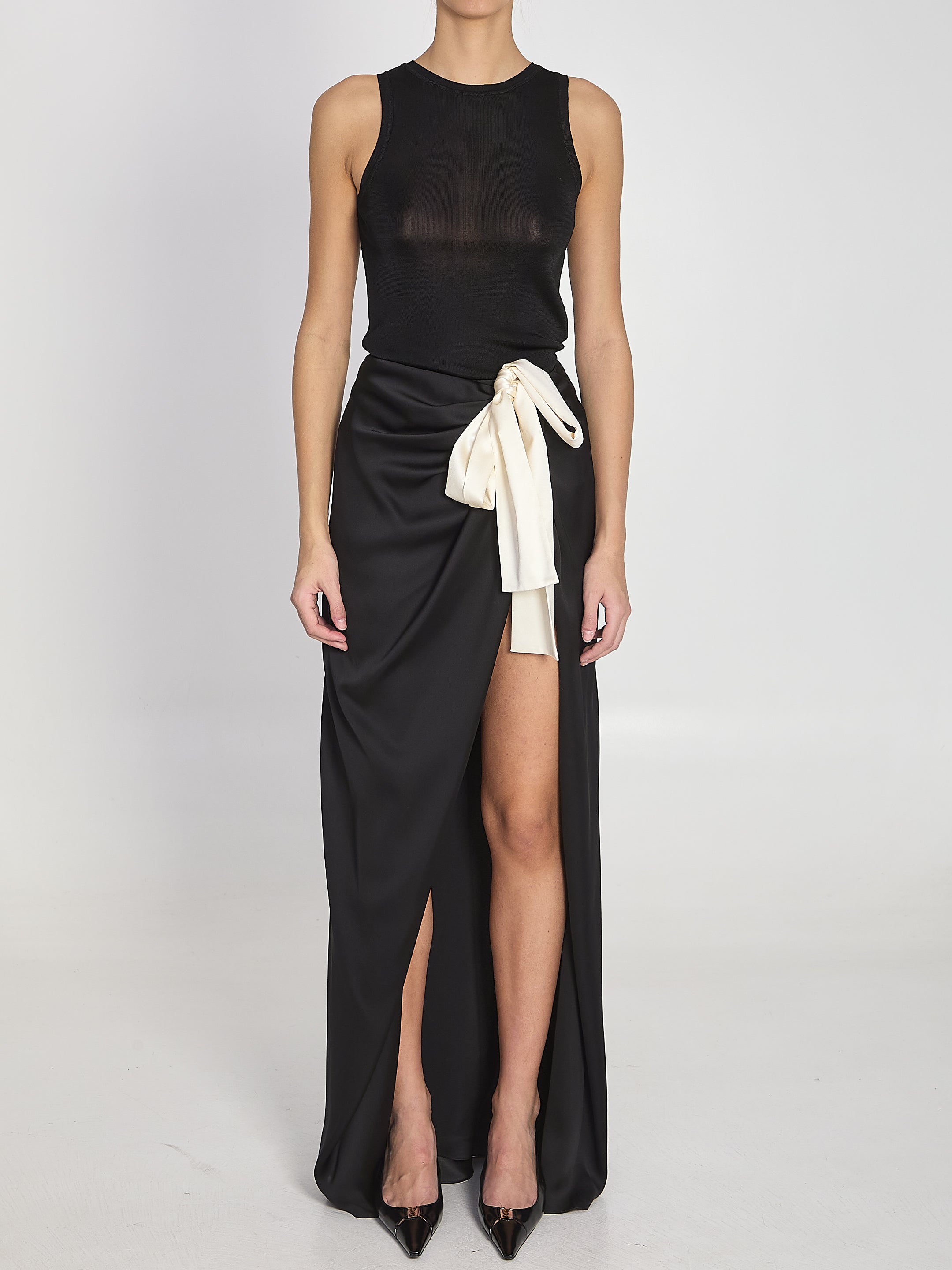 LONG DRAPED TIED SKIRT IN SILK CHARMEUSE
