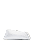 LONG NIGHT CRYSTAL-EMBELLISHED CLUTCH BAG FROM THE ATTICO FEATURING SILVER, CALF LEATHER, CRYSTAL EMBELLISHMENT, ASYMMETRIC BODY, SILVER-TONE HARDWARE, CLASP FASTENING, INTERNAL LOGO PATCH AND DETACHABLE SHOULDER STRAP.