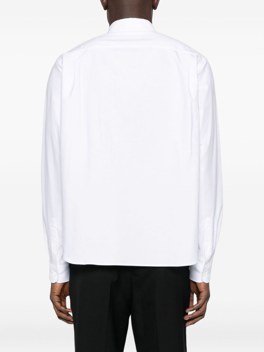 Elevate your wardrobe with this classic long-sleeved button-up shirt from Prada. Crafted in crisp white with a timeless shirt collar and refined tailoring, this versatile piece embodies sophisticated simplicity.