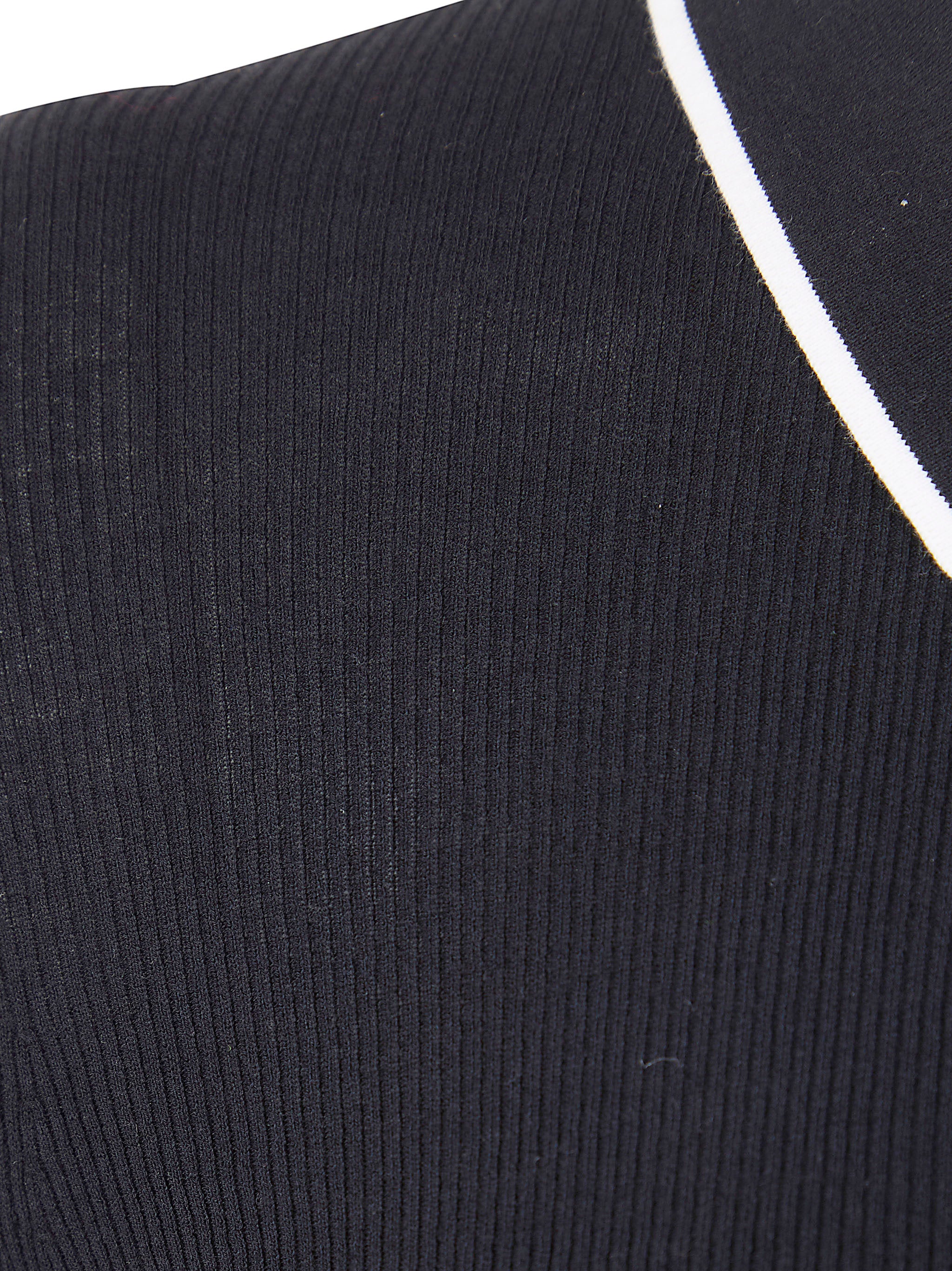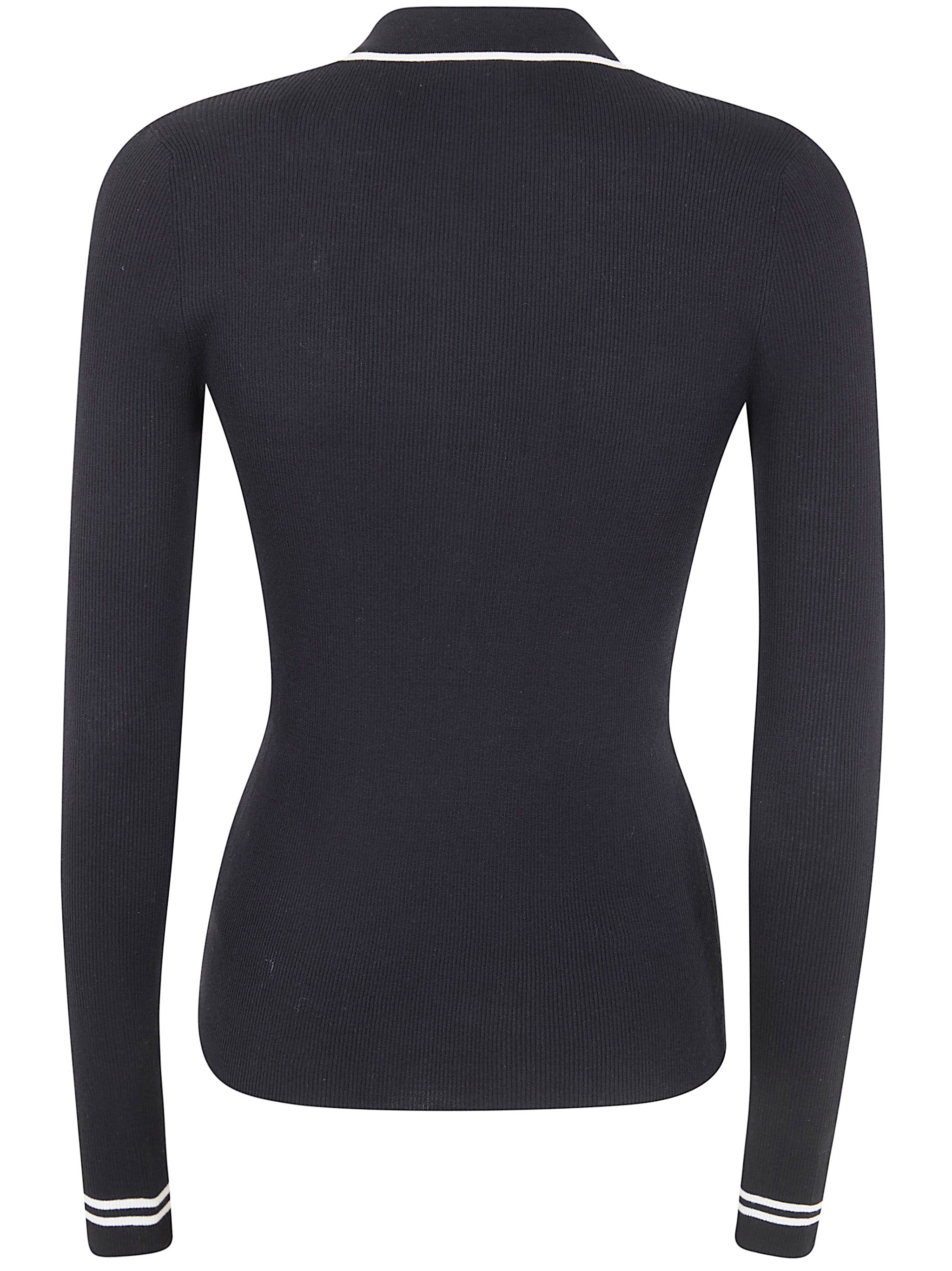 The ribbed knit construction offers both comfort and structure, while the fitted silhouette creates a polished, feminine look. Style it with tailored trousers for the office, or pair with your favorite denim for effortless weekend elegance.