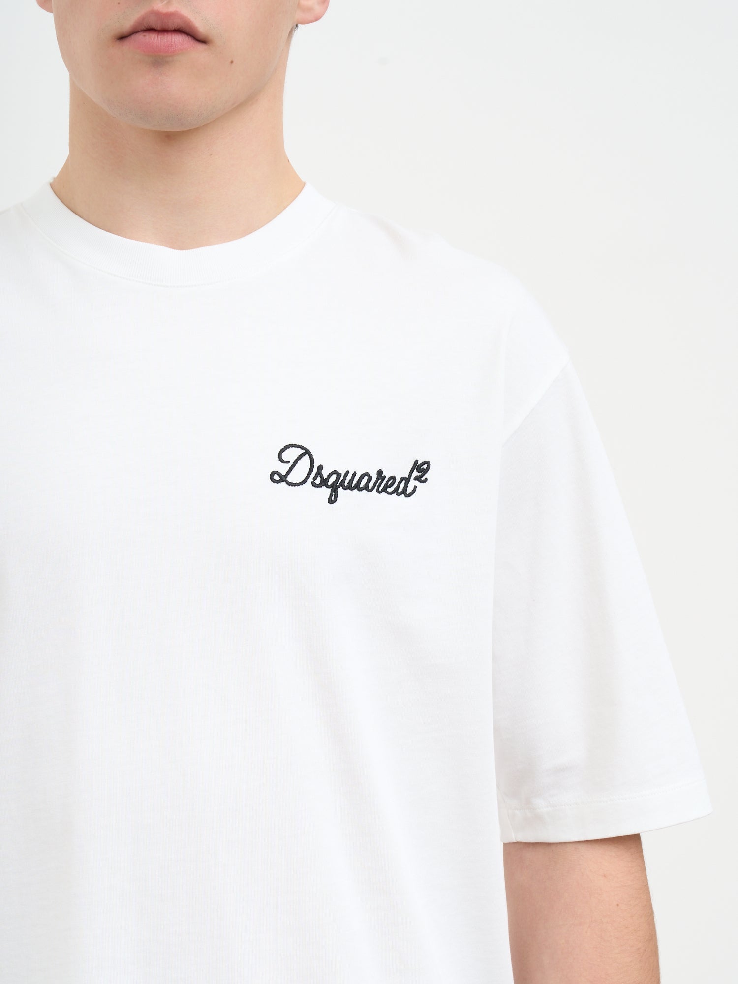 Elevate your everyday wardrobe with this Loose Fit T-Shirt from DSQUARED2. Crafted in crisp white, this relaxed tee features a classic crew neckline and an embroidered logo detail that adds a touch of designer sophistication.