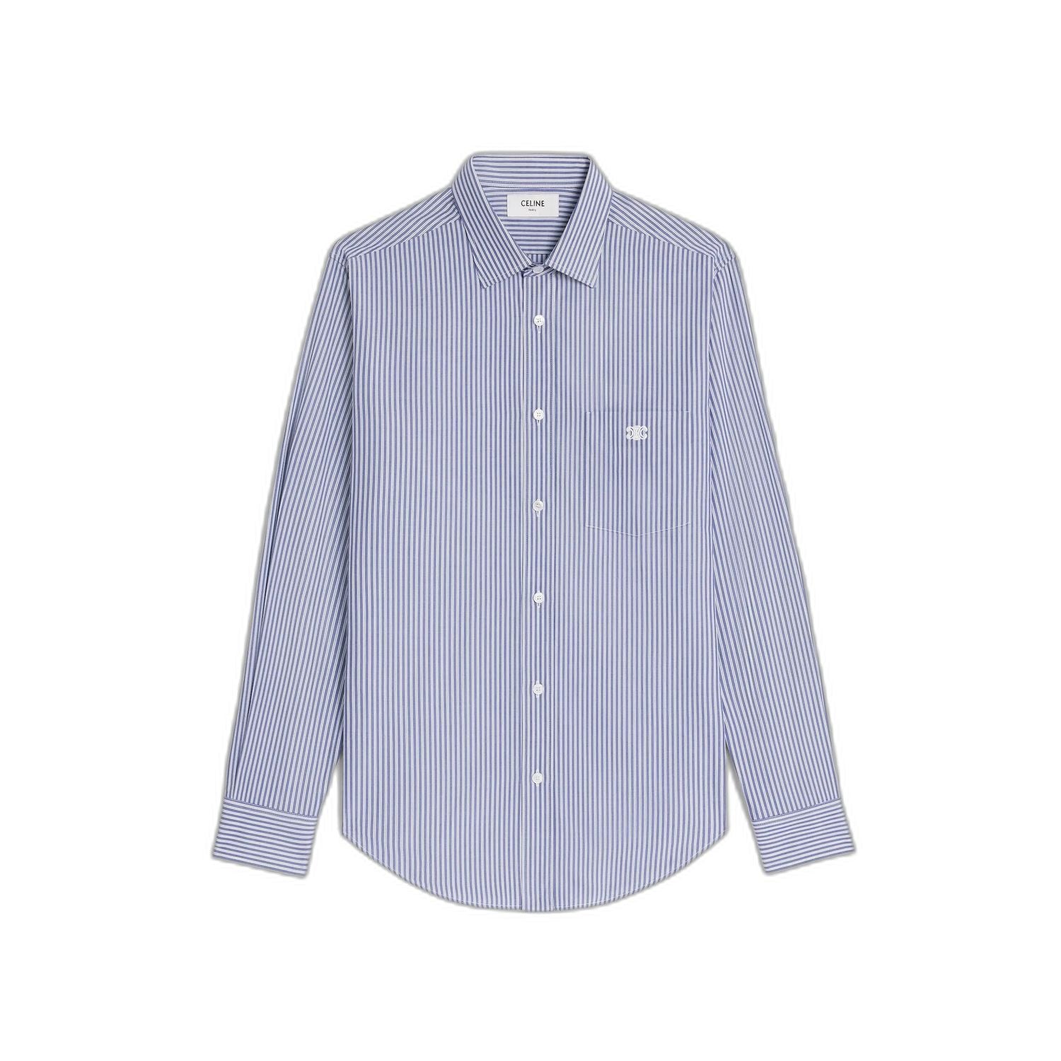 Elevate your everyday wardrobe with this Loose Striped Cotton Shirt from Celine. Crafted from premium striped cotton, this relaxed-fit button-down features a classic drugstore collar and signature Triomphe embroidery for a touch of luxury.