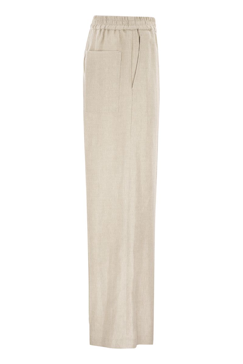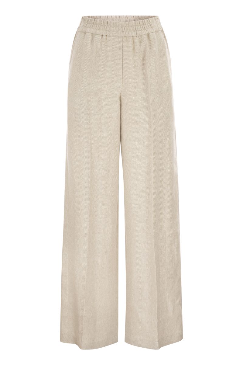 LOOSE TRACK TROUSERS IN CHEVRON LINEN AND COTTON