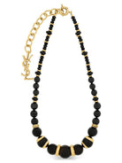 Make a bold statement with the Saint Laurent LouLou Bead Necklace, a stunning piece that combines luxurious materials with iconic design. This eye-catching necklace features graduated black beads crafted from wood, onyx, and glass, beautifully accented with gold-tone brass rings and the signature YSL logo charm.