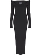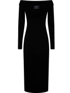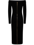 LS DOUBLE COLLAR KNIT ZIPPED MIDI DRESS